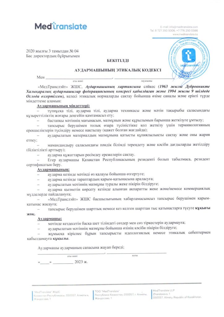MEDTRANSLATE халықаралық компаниясы эксклюзивтілік, инновациялық, технологиялылық және қызмет көрсетудің барынша жоғары сапасы қағидаттарын біріктіреді.